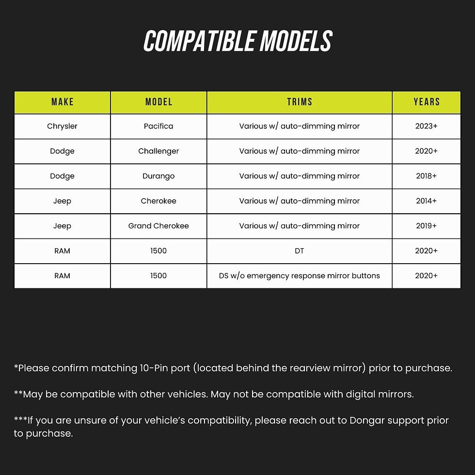 Dongar Dashcam Power Adapter (10-pin Type D) for Mopar Vehicles.